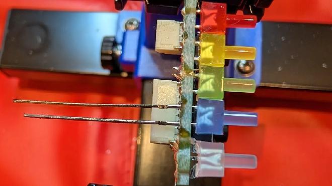 I figured that out after I soldered the LED – luckily I only had to push the LED a bit down to get it into the hole.